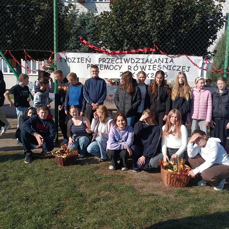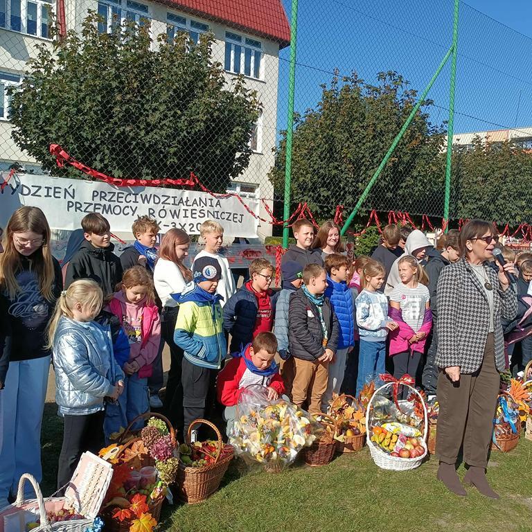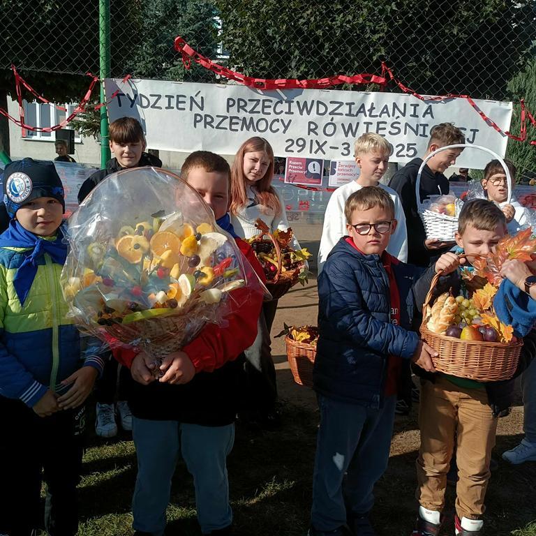 W piątek 3 października, piknikiem pod hasłem „PRZEMOCOWE AKCJE ZAMIEŃ NA RELACJĘ (I REAKCJĘ)”, podsumowaliśmy Tydzień Przeciwdziałania Przemocy Rówieśniczej. Stworzyliśmy płot dobrych słów, odwiedziliśmy strefę życzliwości i empatii oraz kącik twórczy. Dbając o budowanie pozytywnych relacji, braliśmy udział w grach i zabawach, w których trzeba było ze sobą współpracować. Podzieliliśmy się koszami dobroci ze zdrową żywnością. W czasie finału symbolicznie zerwaliśmy łańcuch przemocy, podpisaliśmy manifest „Przemocy mówię NIE” oraz zakopaliśmy kapsułę czasu z listami do przyszłych pokoleń, w których opisaliśmy, jak chcemy traktować innych. Bardzo dziękujemy Kochanym Rodzicom naszych uczniów za pomoc i zaangażowanie w przygotowanie Koszyków Dobroci i słodkości! Jesteśmy pod wielkim wrażeniem Państwa kreatywności!