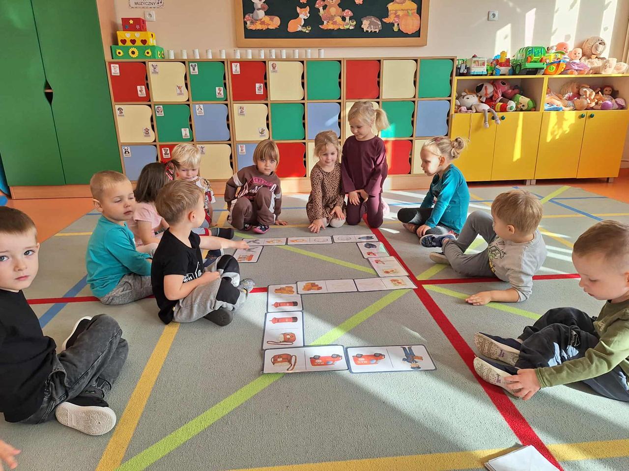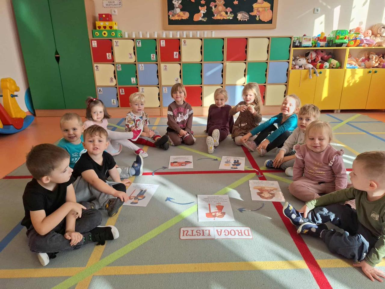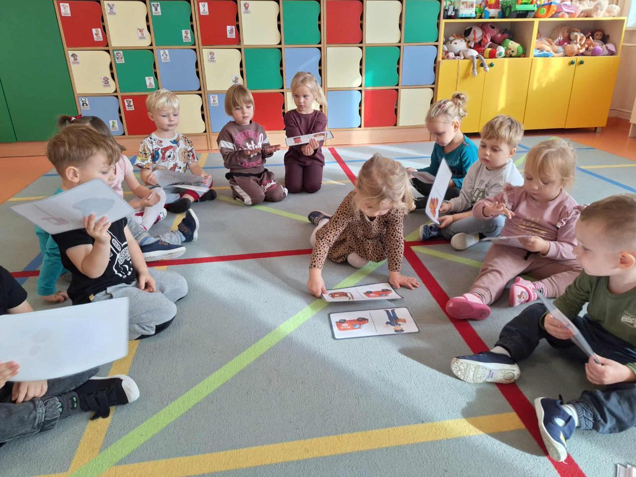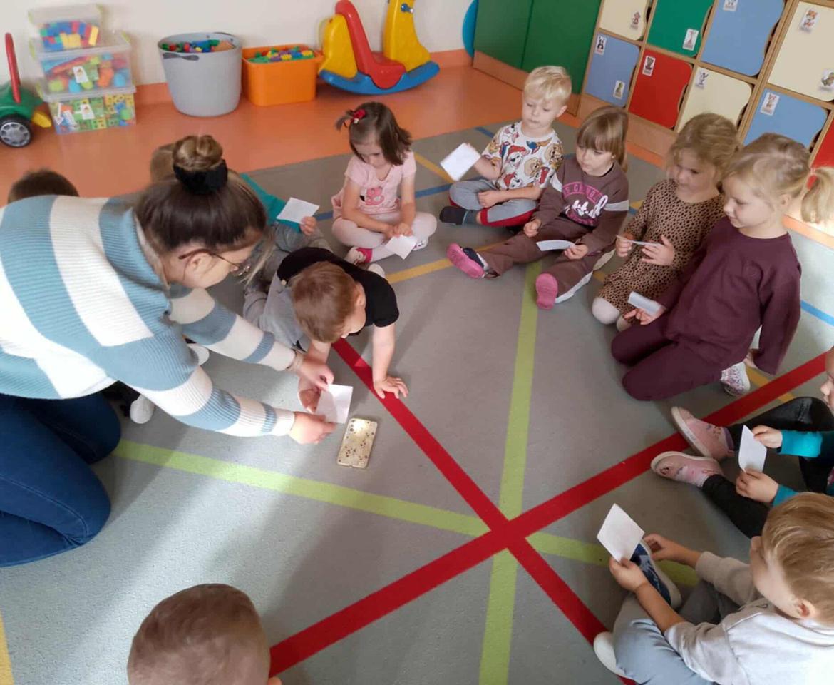 Nasze najmłodsze przedszkolaki odkrywały tajemnice poczty — dowiedziały się, czym jest list, koperta, znaczek pocztowy i pocztówka. Dzieci z zaciekawieniem odgadywały, co może kryć się w przesyłkach, bawiły się w małych listonoszy, grały w pocztowe domino, a także szukały odpowiednich wzorów na kółkach i przypinały do nich klamerki. Na zakończenie stworzyły własne prace plastyczne, które zapakowały w koperty i ozdobiły znaczkami. To był dzień pełen uśmiechu i nowych odkryć!