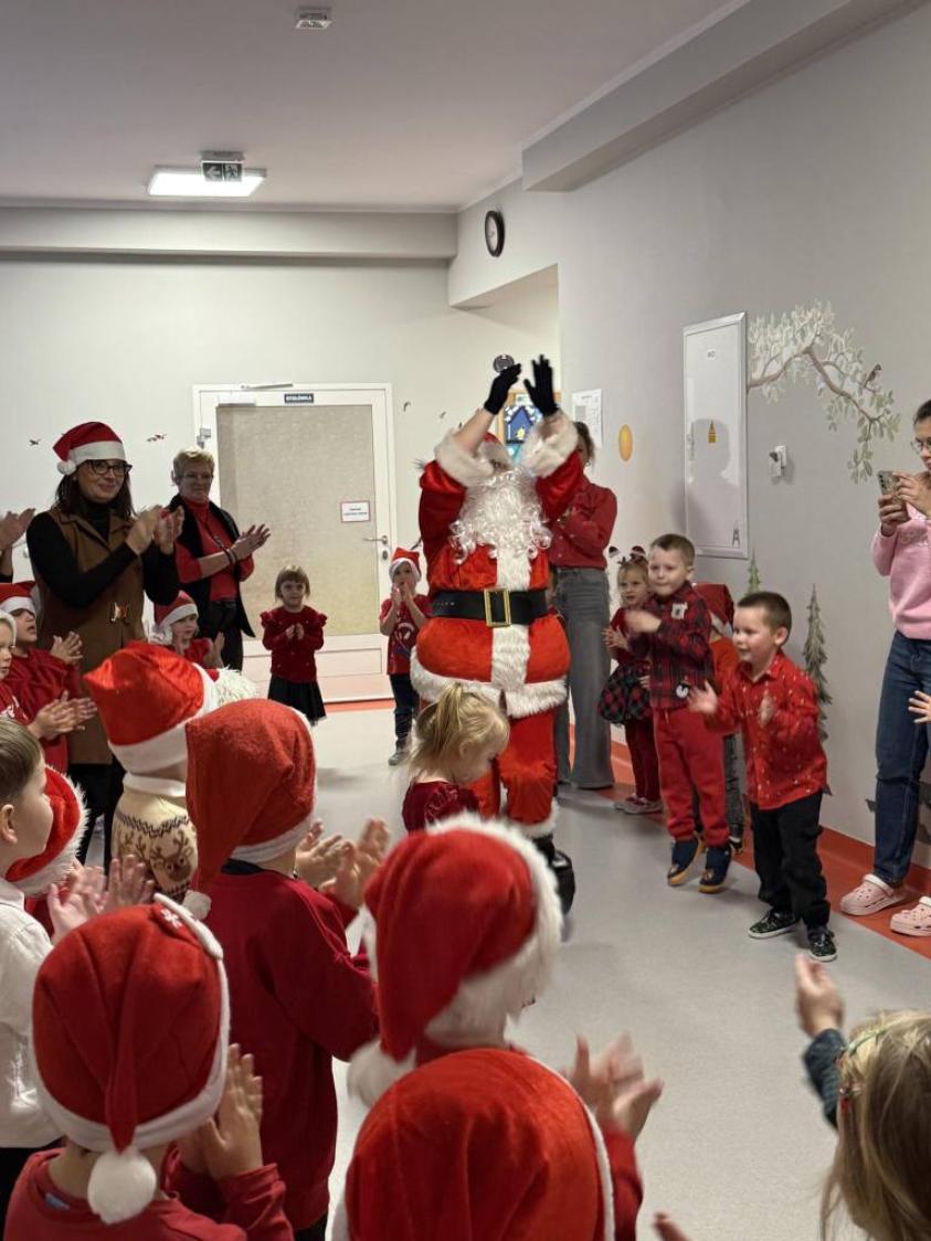 Mikołaj nie przybył sam, lecz w eskorcie swoich niezastąpionych pomocników. Były wspólne tańce, piosenki, dużo śmiechu i oczywiście drobne upominki.