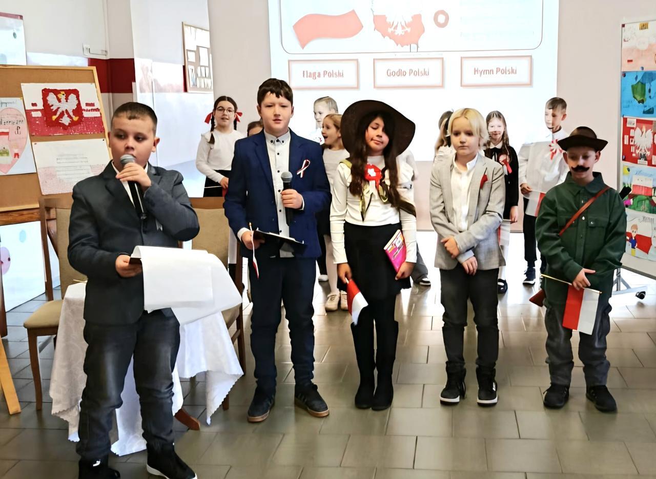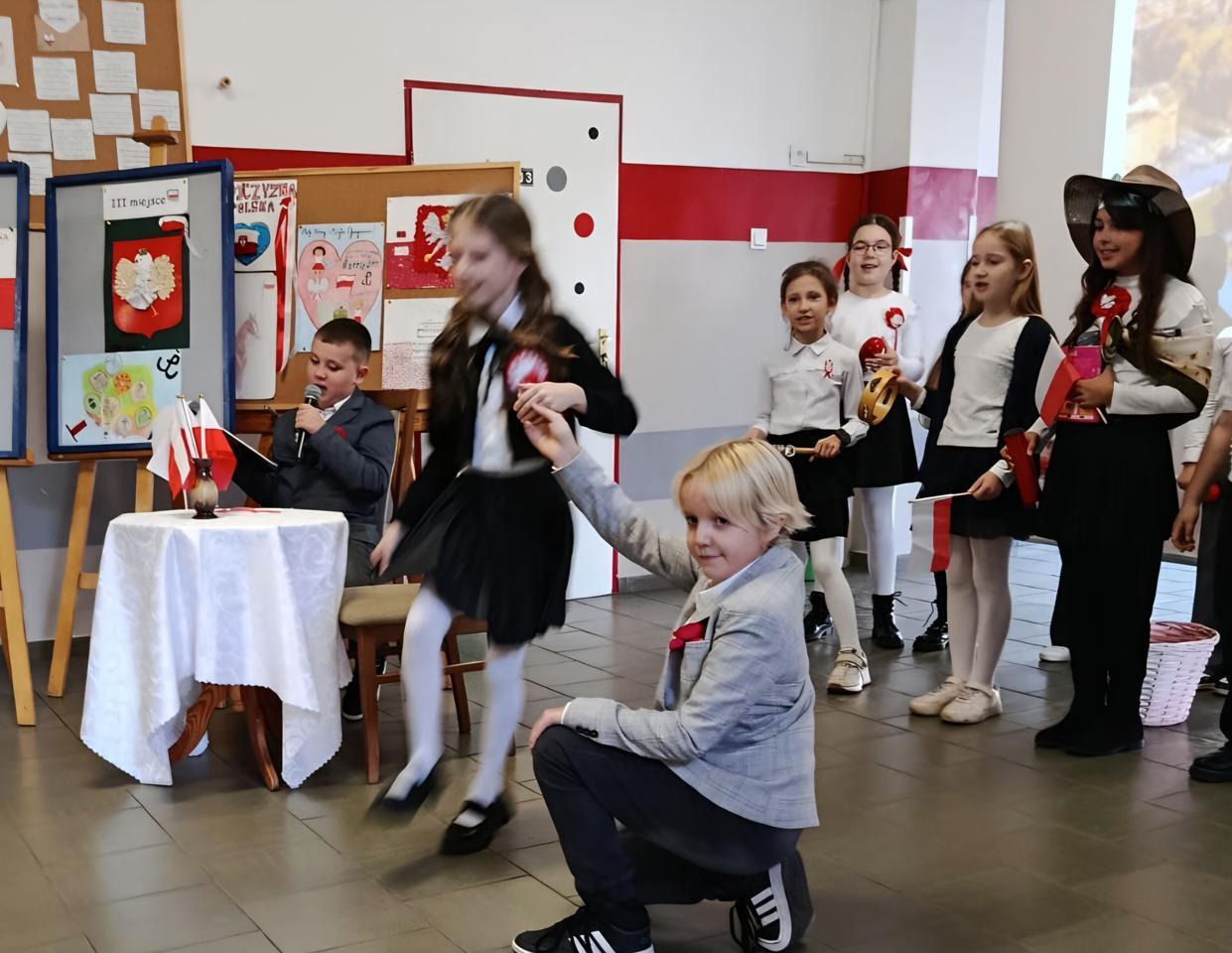 Rocznica odzyskania przez Polskę niepodległości, a wraz z nią uroczyste świętowanie tego wielkiego wydarzenia, na stałe wpisała się w kalendarz naszych, szkolnych uroczystości. Każdego roku z tej okazji odbywa się akademia, która zawsze jest dla uczniów wspaniałą lekcją historii i patriotyzmu. W tym roku uczniowie klasy III c swoim występem ukazali uczniom klas młodszych fakty i ważne informacje o trudnych losach naszej Ojczyzny. Uczcili wolność naszego kraju, o którą wszyscy z nas powinni dbać każdego dnia.