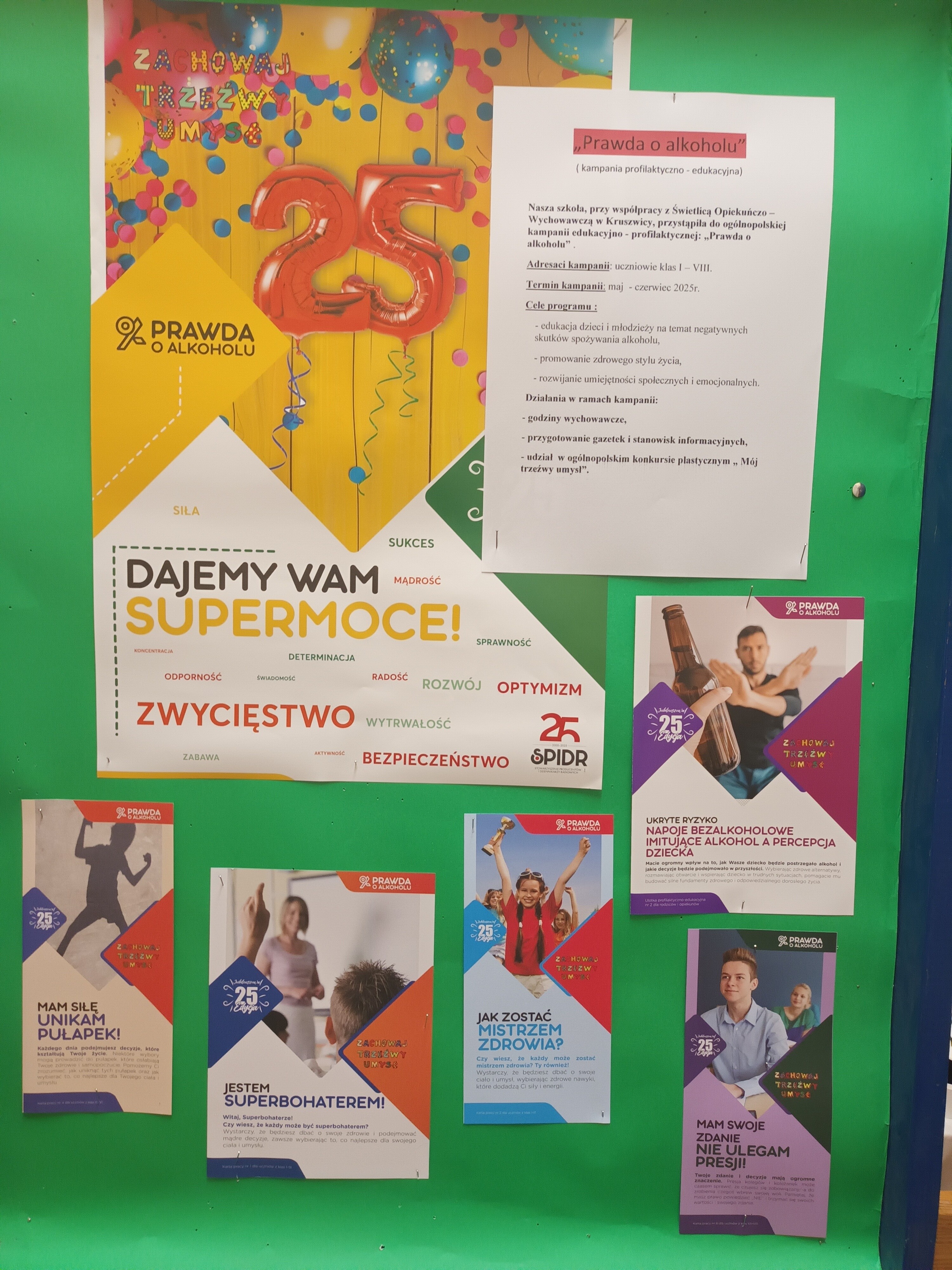 Nasza szkoła, przy współpracy z Świetlicą Opiekuńczo – Wychowawczą w Kruszwicy, przystąpiła do ogólnopolskiej kampanii edukacyjno - profilaktycznej: „Prawda o alkoholu” .