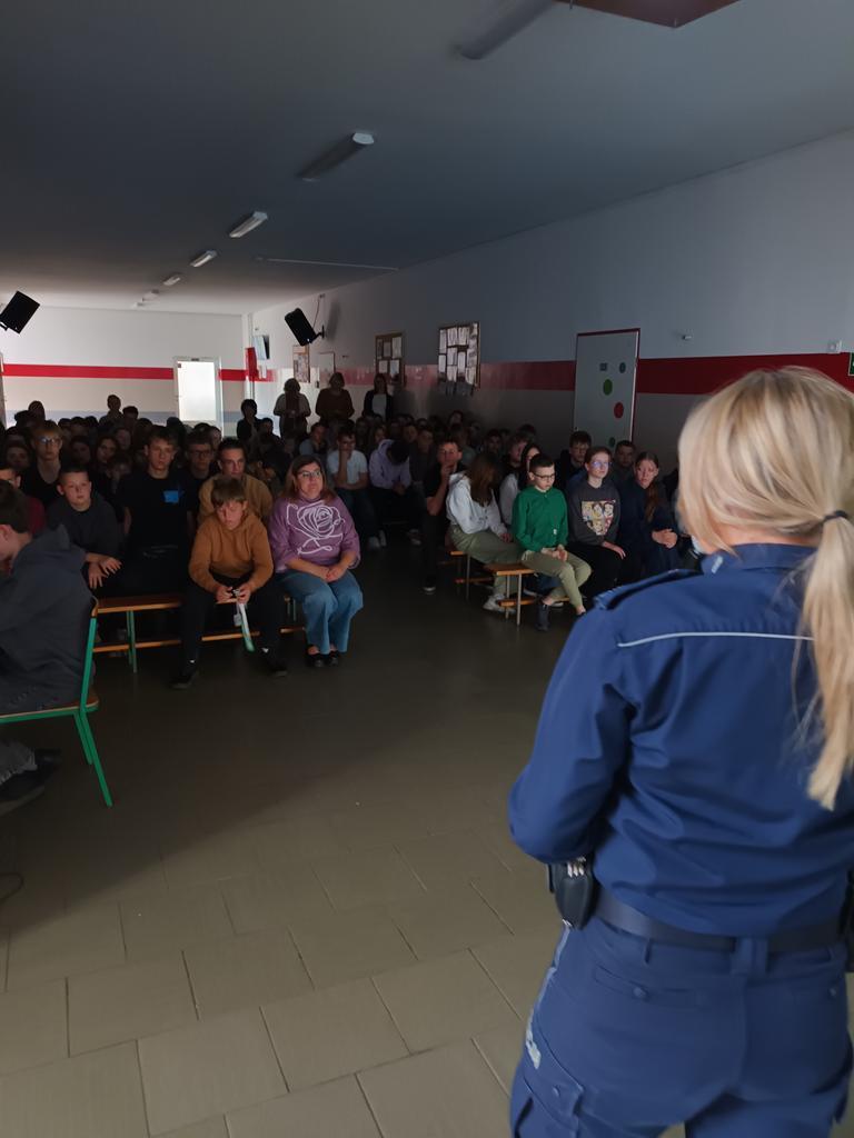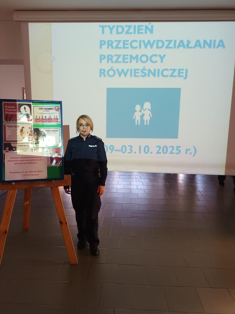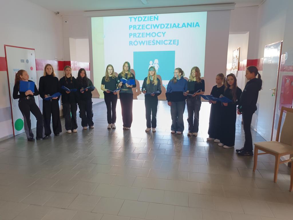 2 października 2025r.w ramach Tygodnia Przeciwdziałania Przemocy Rówieśniczej w naszej szkole odbył się apel. Spotkanie miało na celu uwrażliwienie uczniów na problem przemocy rówieśniczej i promowanie postaw opartych na szacunku, empatii i wzajemnym wsparciu. W tematykę apelu wprowadził szkolny chór, który zaprezentował poruszającą piosenkę „Stop przemocy”. Występ ten stworzył odpowiedni nastrój do refleksji i podkreślił wagę podejmowanego tematu. Punktem kulminacyjnym spotkania było wystąpienie st. asp. p. Marioli Witoń z Komisariatu Policji w Kruszwicy na temat” Przemoc rówieśnicza – czym jest i jak jej przeciwdziałać”. Pani aspirant zapoznała również uczniów z problemem przemocy rówieśniczej w aspekcie odpowiedzialności karnej nieletnich w świetle obowiązujących przepisów prawa. Apel zakończył występ chóru z piosenką „ Słowa mają moc”, która przypomniała wszystkim, jak wielkie znaczenie mają nasze codzienne gesty i wypowiedzi. To słowa: Dziękuję, Przepraszam, Proszę powinny nam towarzyszyć na co dzień. To właśnie one mają moc.