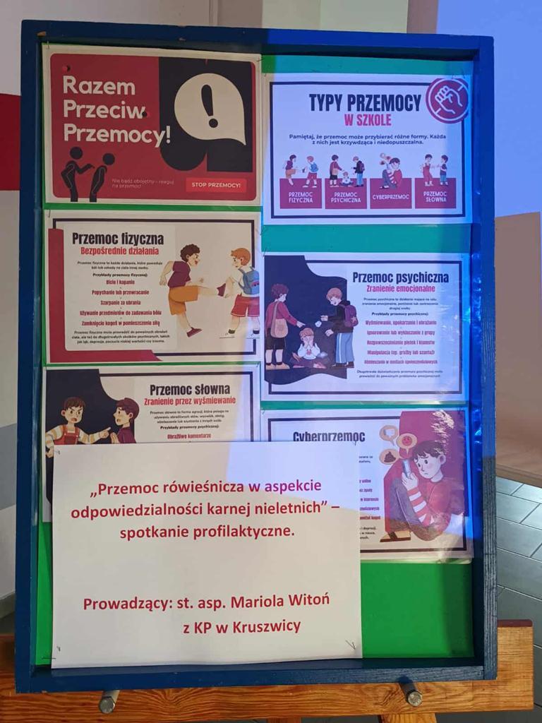 W czwartek odwiedziła nas pani aspirant Mariola Witoń, która przedstawiła temat przemocy rówieśniczej w aspekcie odpowiedzialności karnej nieletnich. Przeczytacie o tym w oddzielnym poście.