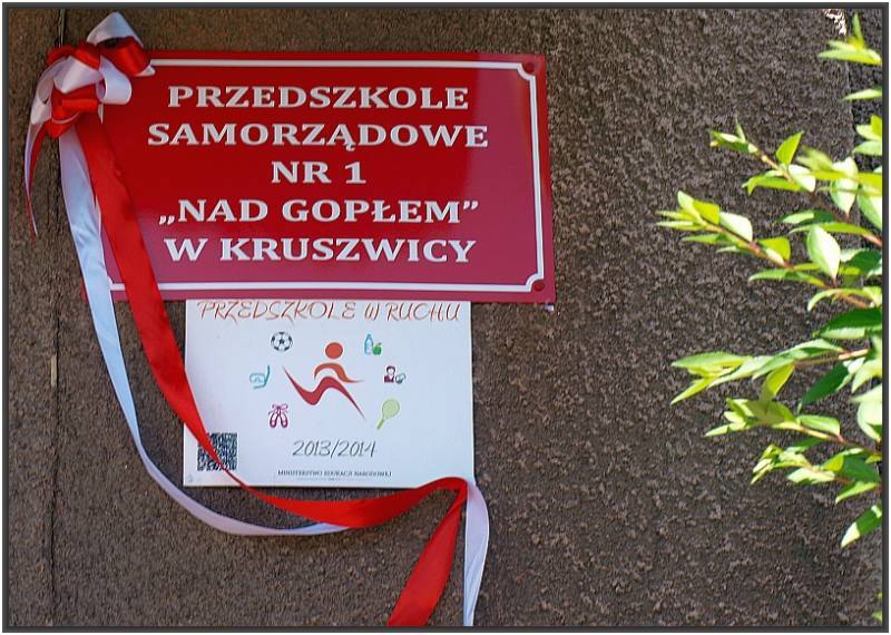 Dnia 9 września Roku Pańskiego 2016, Przedszkolu Samorządowemu nr 1 w Kruszwicy, placówce z 67-letnią tradycją Uchwałą nr XVI/181/2016 Rady Miejskiej w Kruszwicy z dnia 28 stycznia 2016 r. nadano imię "Nad Gopłem"W uzasadnieniu czytamy:"Pismem z dnia 15 grudnia 2015 r. Społeczność Przedszkola Samorządowego nr 1 w Kruszwicy zwróciła się do Rady Miejskiej z prośbą o wyrażenie zgody na nadanie placówce imienia Nad Gopłem Społeczność Przedszkola w okresie od 5 do 9 października głosowała na nazwę placówki wybierając spośród trzech propozycji imion: "Jana Pawła II", "Marii Patyk" oraz "Nad Gopłem". W wyniku głosowania zdecydowaną większością (76%) wygrała propozycja imienia / nazwy "Nad Gopłem". W związku z powyższym podjęcie przez Radę Miejską uchwały jest uzasadnione". Nadanie imienia, to ważny dzień dla naszego Przedszkola tym bardziej, że placówka znajduje się właśnie nad jeziorem Gopło. Na tę uroczystość wszystkie grupy Przedszkolaków przygotowały specjalny program artystyczny, nawiązujący do tradycji goplańskiej. Zaproszeni goście nie kryli zadowolenia i bardzo chwalili młodych artystów. Spotkanie przebiegało w bardzo miłej i sympatycznej atmosferze, co można zobaczyć na dołączonych zdjęciach.